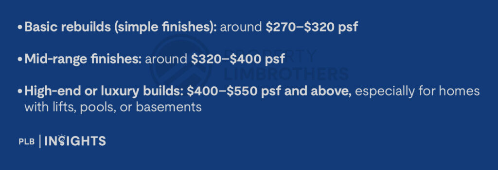 As for timeline, expect at least 12–24 months from demolition to completion — typically closer to the upper end once you include BCA/URA approvals, design finalisation, and interior fit-out.