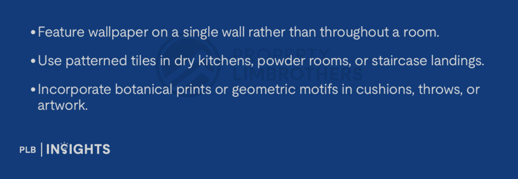 The key is restraint. Patterns should act as accents, not compete for attention. When used selectively, they add personality and charm without overwhelming the space.