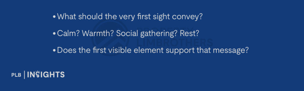 Avoid first-view blockers such as the back of a bulky sofa or a cluttered storage zone. Instead introduce a visual “welcome moment”: an accent chair, sculpture, console vignette, or viewline directed toward greenery or natural light.