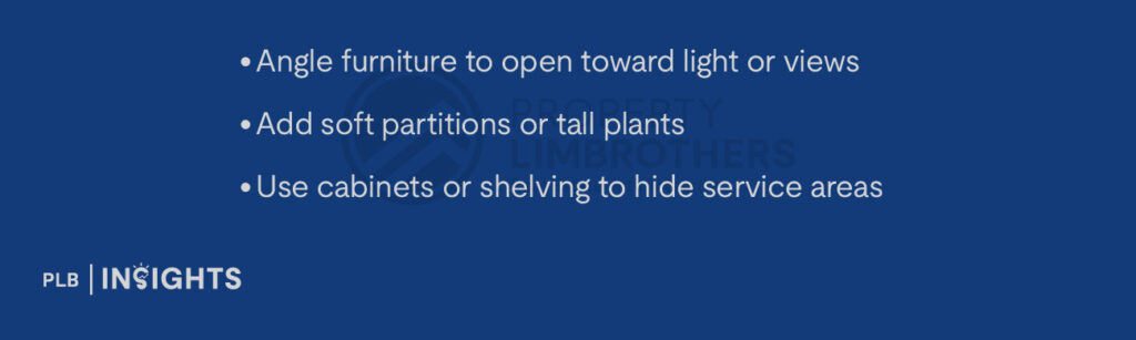 Once circulation is visualised, carve out seating zones in the “quiet pockets” away from high-traffic movement.