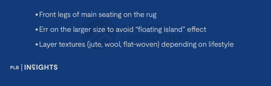 In landed home settings, where scale matters even more, each seating cluster benefits from anchoring: