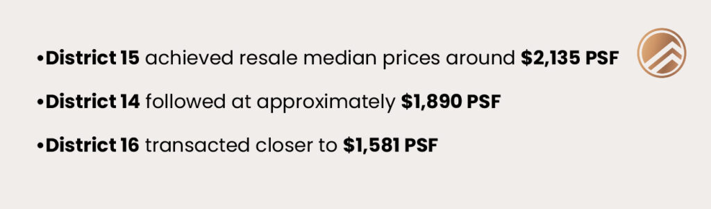 Importantly, these figures reflect actual resale transactions, not optimistic asking prices. Buyers are completing deals at these levels, reinforcing that District 15’s premium is structural rather than temporary.