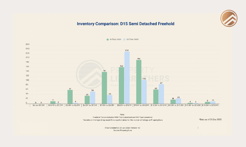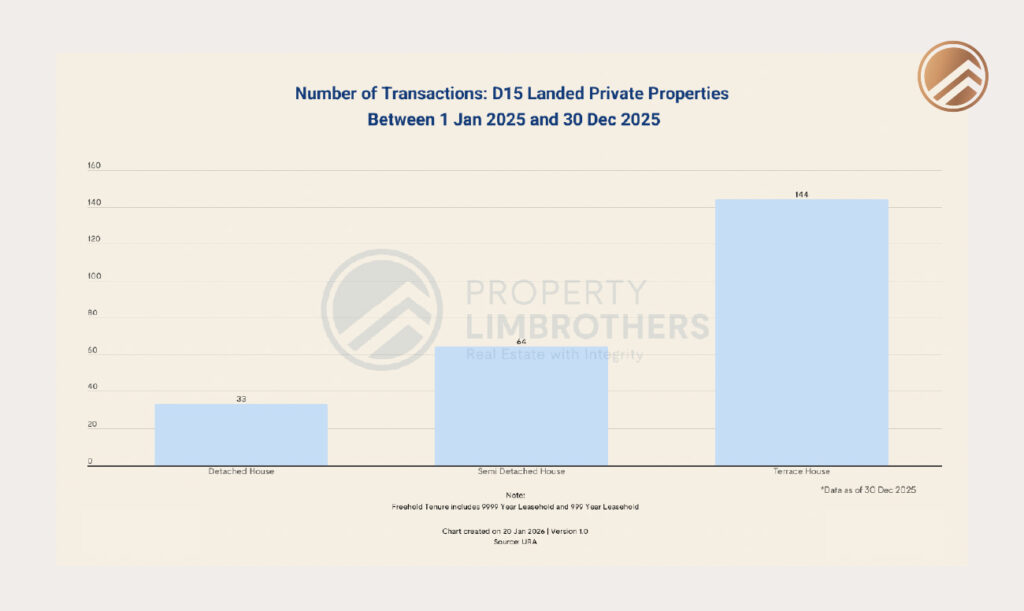 District 15 remains a premium landed district, and underlying demand remains intact. However, the concentration of listings within similar pricing bands means buyers now have greater negotiating power and more time to evaluate options.
