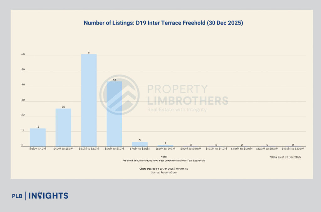As long as transaction volumes remain elevated and absorption remains tight in the terrace and mid-tier segments, District 19’s landed homes will continue to show room for price upside.