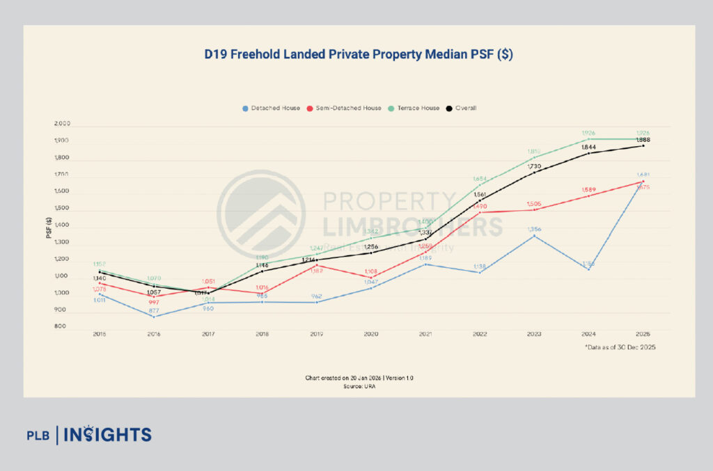 In Singapore’s landed housing market, price growth rarely comes from dramatic shifts or short-term catalysts. Instead, it is shaped by quieter forces: sustained demand, repeated transactions, and a market structure that allows prices to move steadily rather than violently. District 19 exemplifies this dynamic better than any other landed district today.