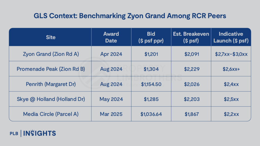 Zyon Grand holds a 10–15% premium over resale D3 condos, but remains competitively priced compared to RCR but CCR fringe launches like Riviere and One Pearl Bank.