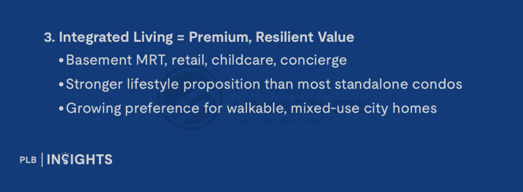 In the long run, lifestyle integration becomes a magnet for both tenants and families — a key reason why MRT-linked developments command resilience.
