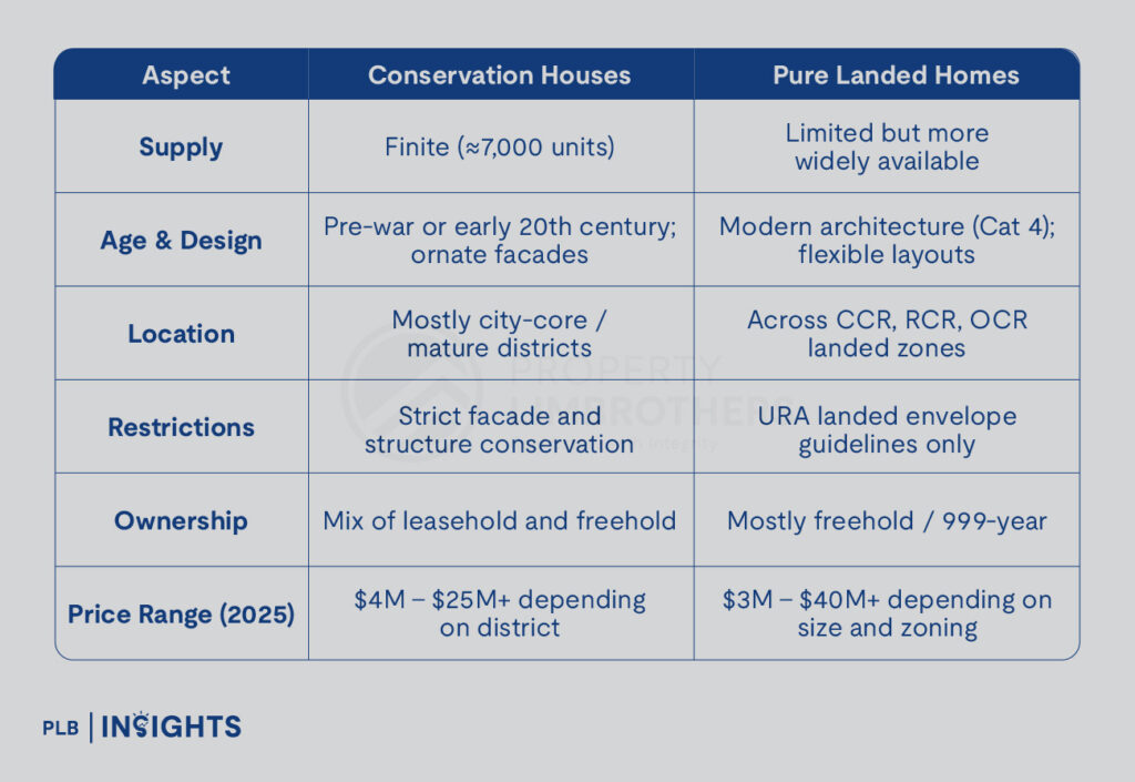 The key distinction lies in purpose and emotion. Buyers of pure landed homes typically focus on space, functionality, and rebuild potential, while conservation home buyers prioritise story, heritage, and individuality.
