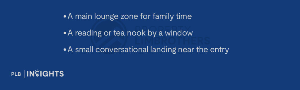 In landed home settings, where scale matters even more, each seating cluster benefits from anchoring: