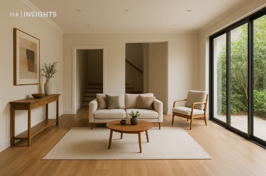 The same principle applies to the living room. This is the emotional core of a home — the space guests first experience, where family members naturally gather, and where everyday routines quietly unfold. Yet even with the luxury of floor area that landed homes enjoy, layouts can still feel awkward or unintuitive if furniture competes with the natural movement of the home.