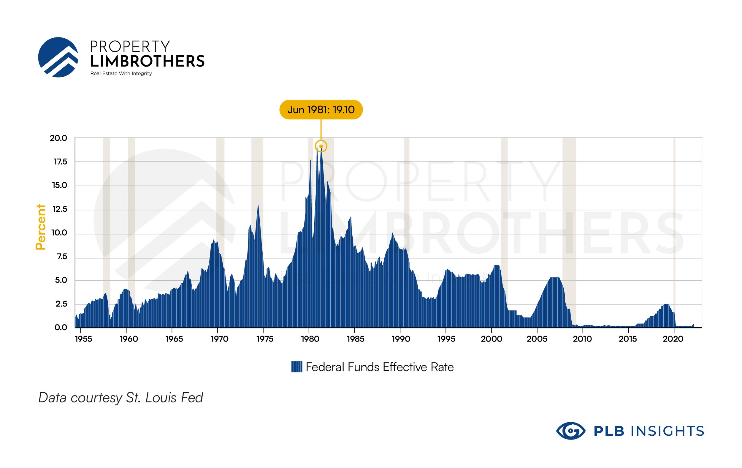 When looking at the recent history of interest rates, 5% may seem really high. Wait till you look at the interest rates in the 1980s, when the U.S. was combating double digit inflation. Compared to 1980 (in the U.S.) which had an annual inflation rate of 13.5%, the current annual inflation rate is at 8.5%. A 5 percentage point difference. The highest interest rate in 1980 reached 19.10% in June, 1981. Compared to today’s 1%, that is a 18 percentage point difference.