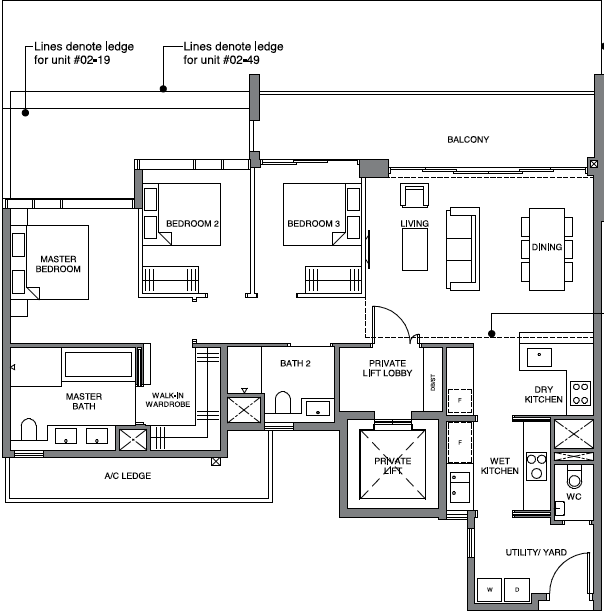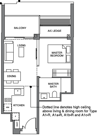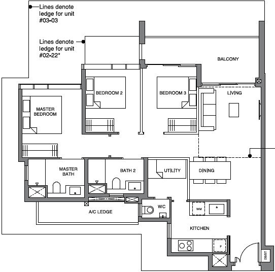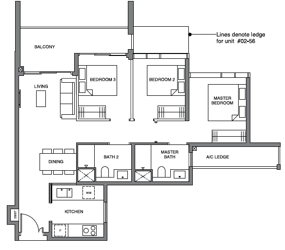 Wilshire Residences 3-bedroom: 78sqm/840sqft