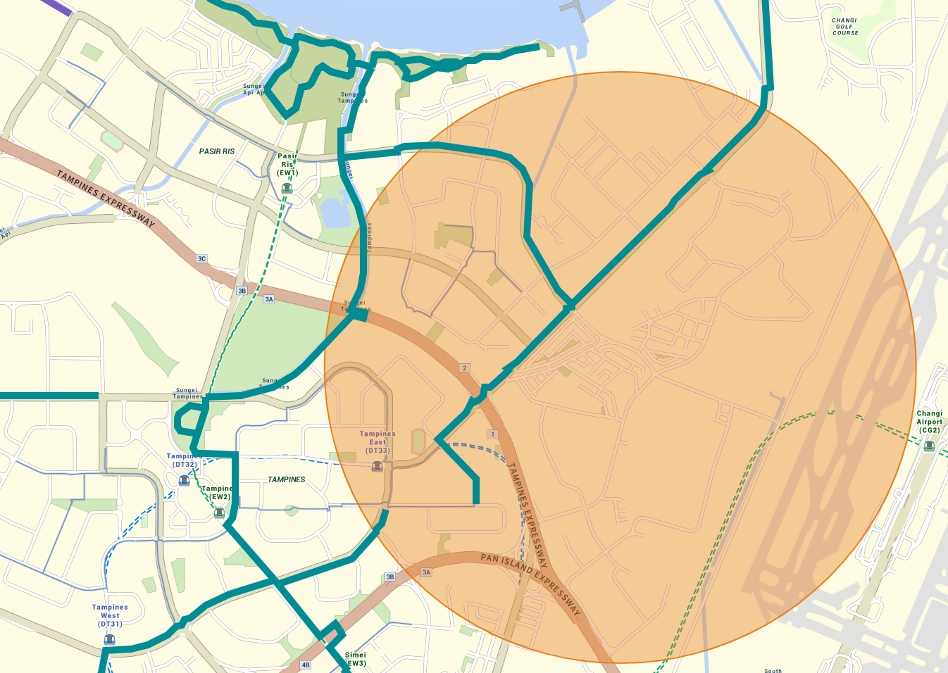 Parc Komo Accessibility Bus to Tampines East MRT Station courtesy Googlemaps.png