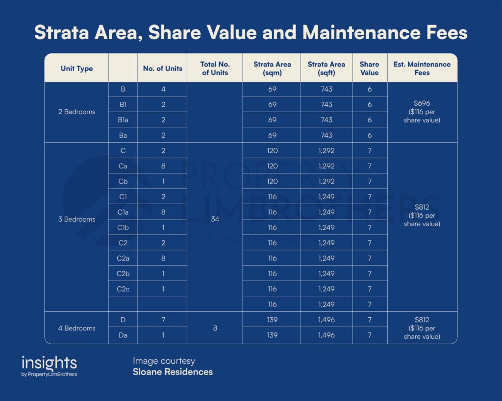 Sloane Residences comes with unique layouts, high quality finishes, and good sense of space. Buyers should note that the site area is relatively small (3,618 square metres), with not as many facilities as a conventional full-sized condominium development. The maintenance fee is also expected to be high due to private lifts, and comes in at around $116 per share value (estimated to be around $696 for 2 bedroom units and over $812 for 3 bedroom units). We have a table below detailing how the number is derived.