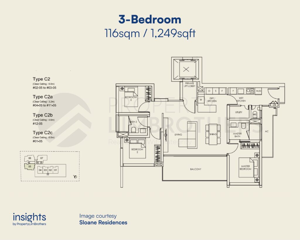 The ceiling height of the 2-bedders is much higher than most of the other 3-bedder units in Sloane Residences, and offers many creative possibilities for space utilisation. For you to better visualise the layouts for the different types of units available, we have put together the floor plans below.