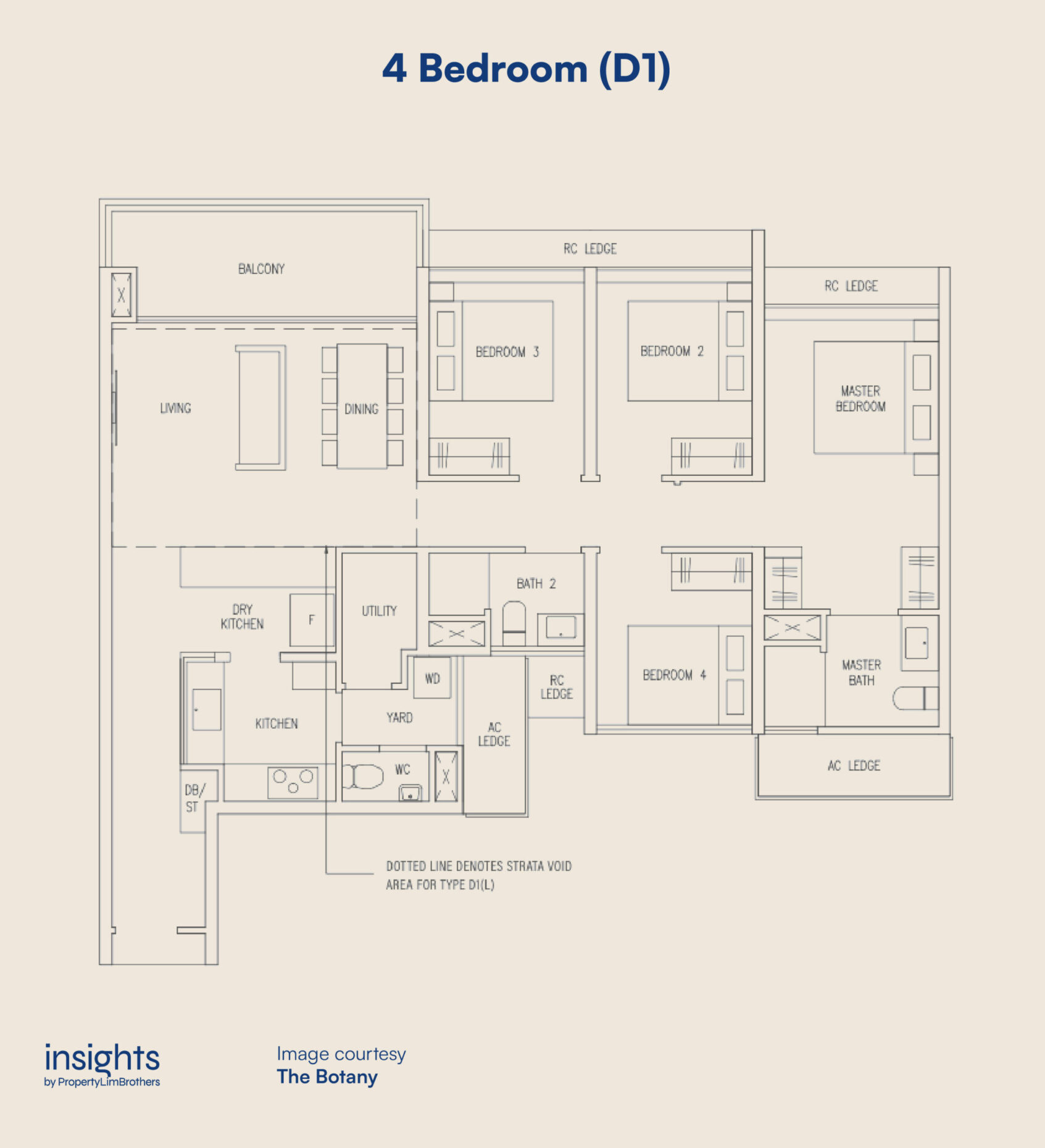 Coming to the larger unit types at The Botany, the 4-Bedroom units have two main layouts with penthouse and ground floor variations. With 57 units available in total, the 4-Bedders can be found in four stacks. However, only the featured D1 layout can be found in a north-facing stack that has a view over the GCB enclave.