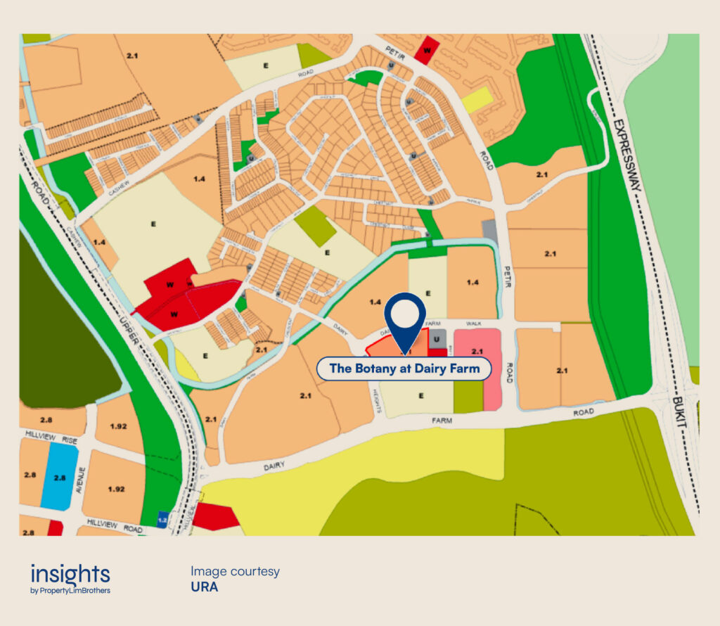 Lastly, the area already has numerous educational institutions (marked as E) and vibrant residential spaces (marked in orange) in the pipelines that are sure to entice those who are looking for a comfortable and convenient place to call home. With the added plans for future development, the appeal of Dairy Farm is only set to grow as the estate matures over time.