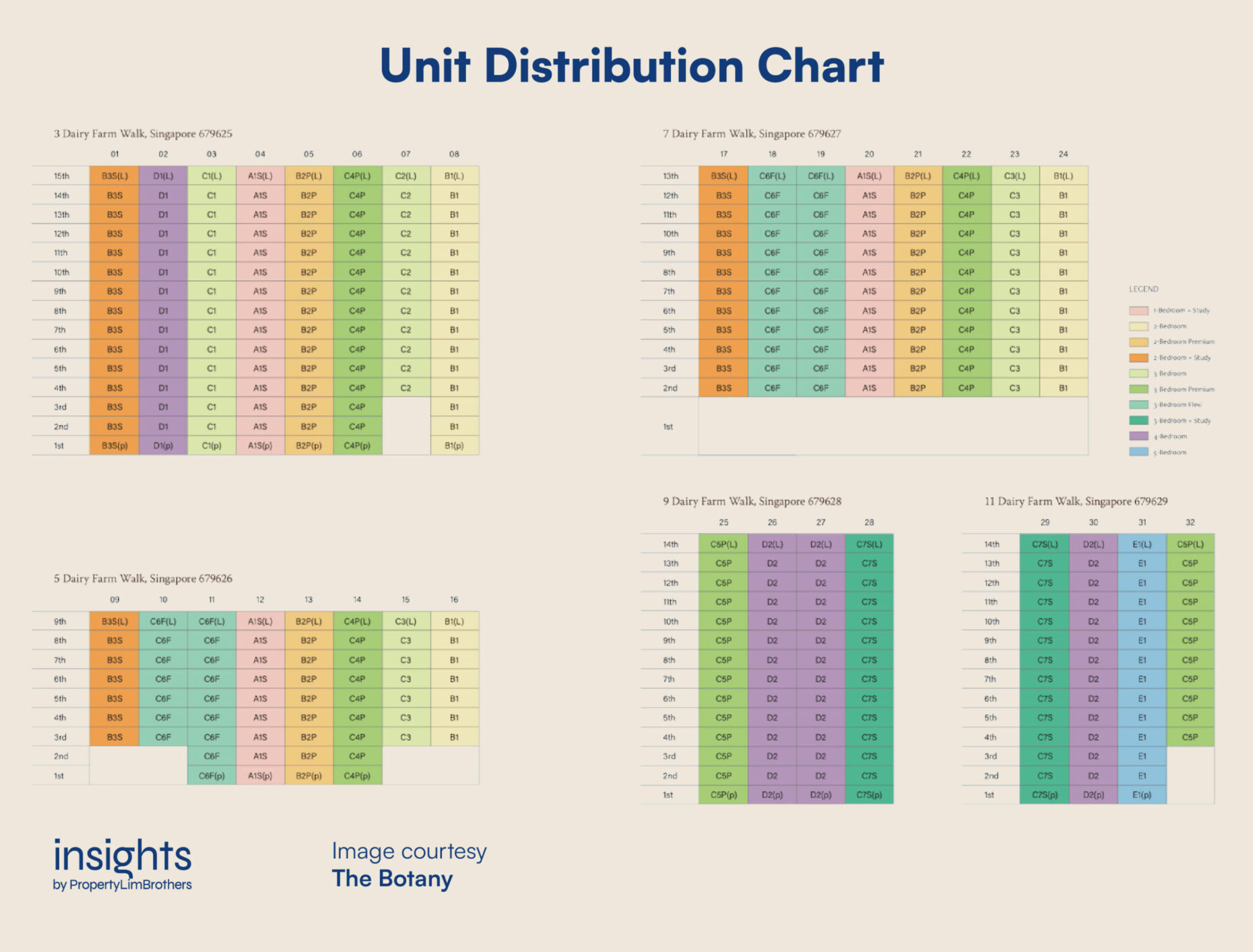 3-Bedroom types make up almost half of the unit offerings here at The Botany, and they can be found in every block. 5-Bedroom types are the rarest, with only 14 of such units. They are located in a single stack – stack 31 in block 11. The two point blocks in the development houses only 3-Bedroom to 5-Bedroom types and are likely the more premium stacks and blocks here.